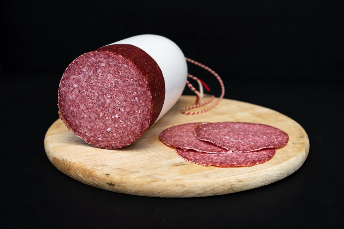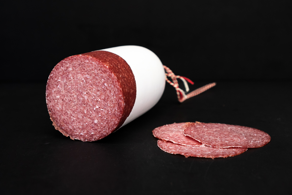 | Ingrediënten | rundvlees, zout, rundercollageen, kaliumzout, knoflookpoeder, geconcentreerd, bietensap, dextrose, natuurlijk, aroma, antioxidant:, E301, conserveermiddelen:, E250/E235, rook |