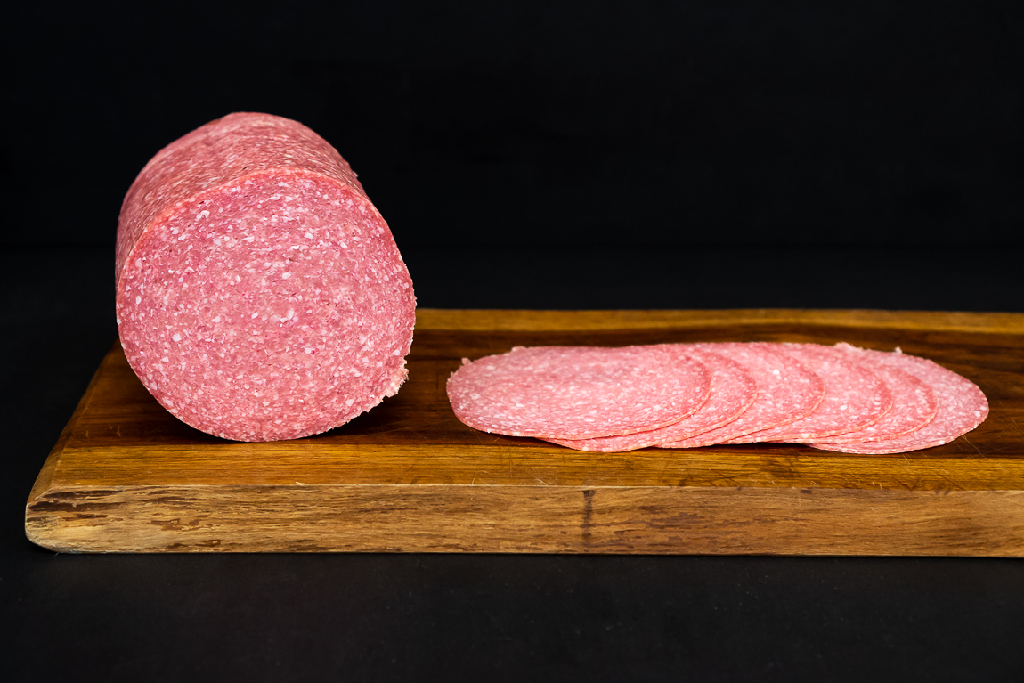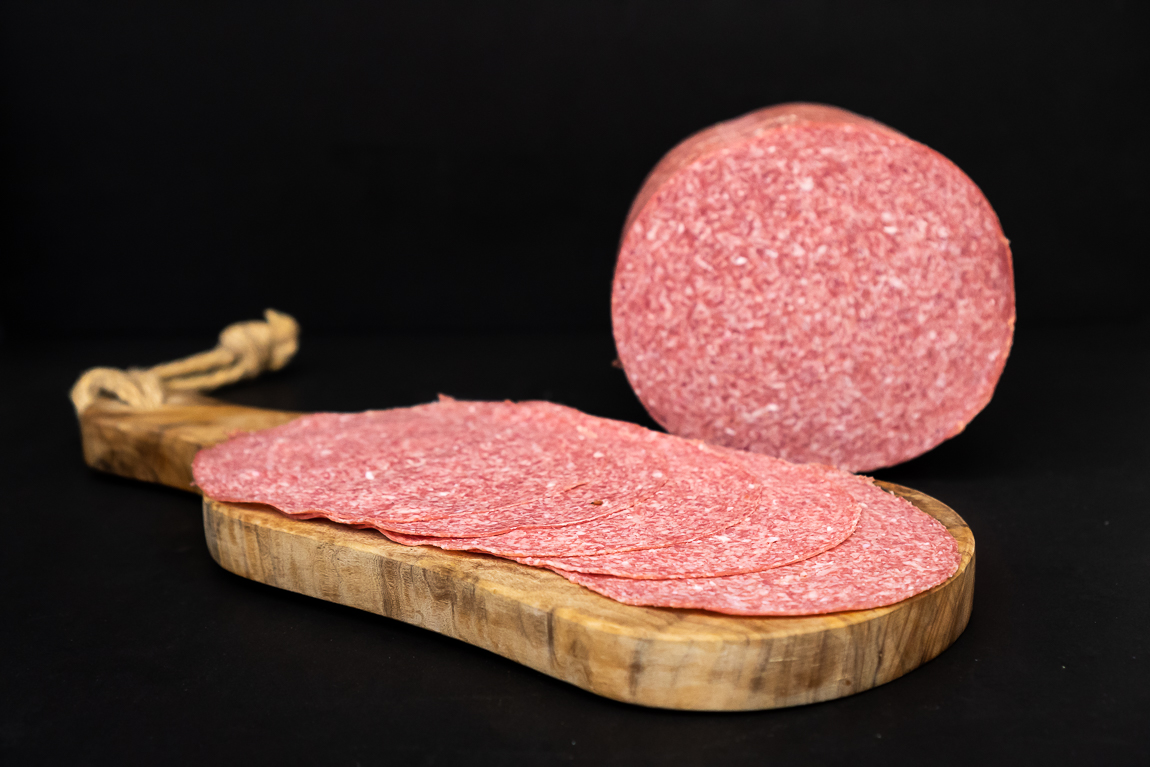 | Ingrediënten | Varkensvlees, zout, glucosestroop, dextrose, Specerijen, Kruiden, Kruidenextracten, Varkenshemoglobine, antioxidant:, E301, Kleurstof:, natuurlijk, cochenillerood, conserveermiddel:, E250, Conserveermiddel:, E252, Fermenten, rook, Oppervlaktebehandeling:, conserveermiddel:, E202 |